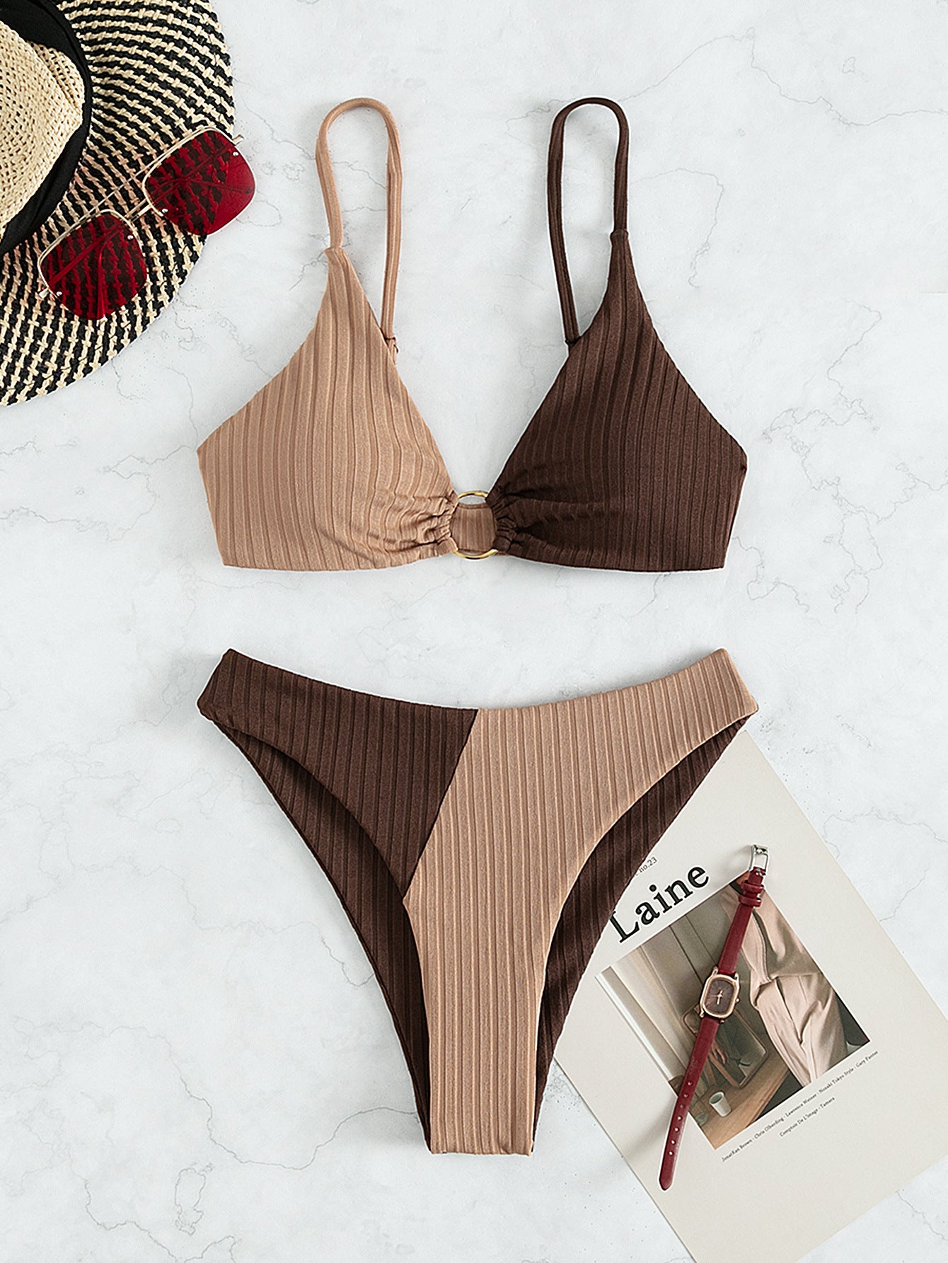 Solid Color Stitching Bikini